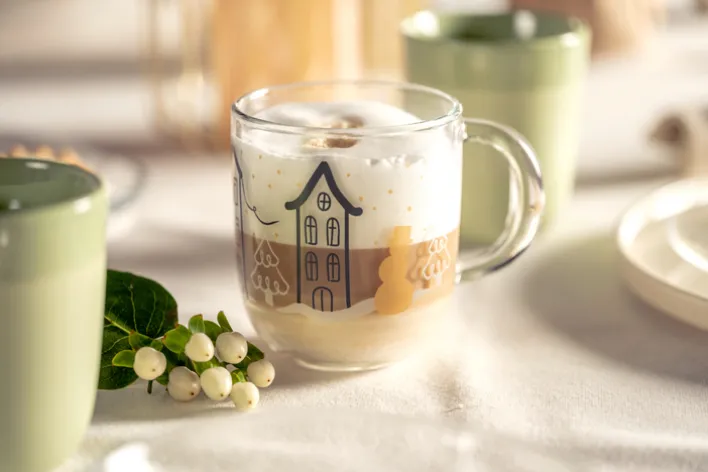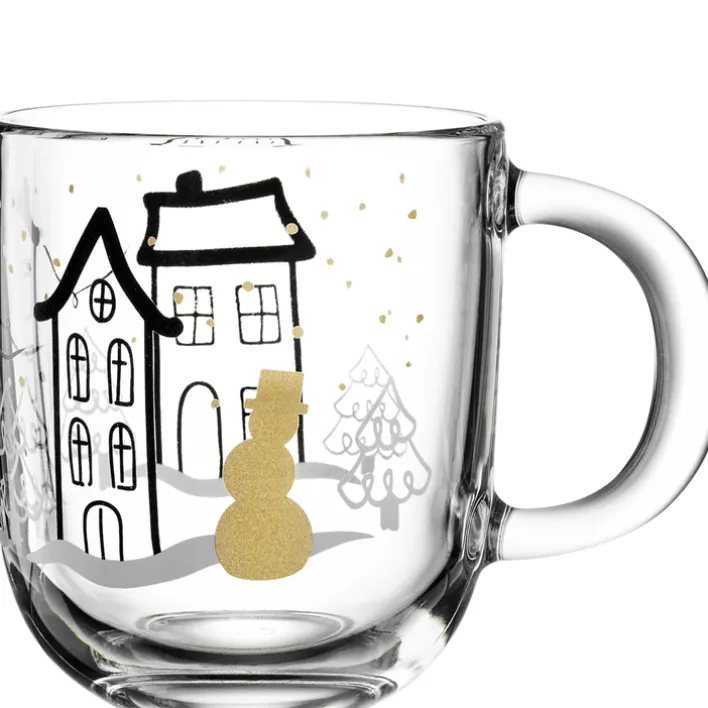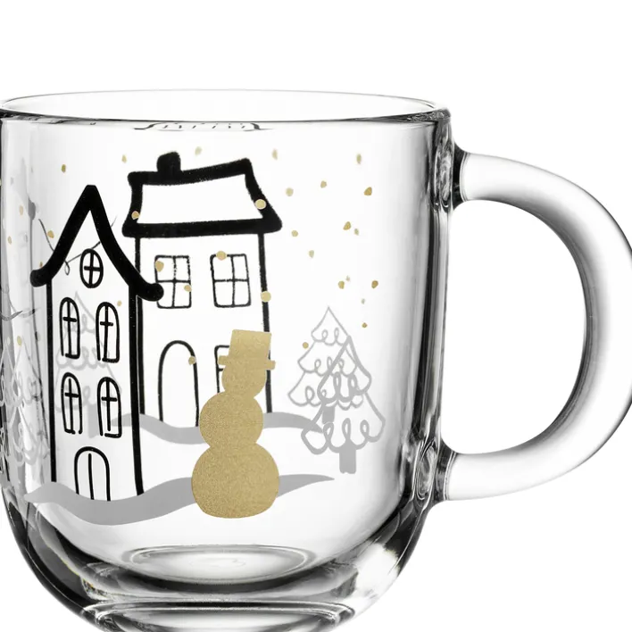Auch wenn die LEONARDO MAGICO Häuser Tasse gerade nicht befüllt ist, ist sie in der Küche und im Ess- sowie Wohnzimmer immer noch ein echter Hingucker und damit ein willkommenes Deko-Element. Die feine grafische Applikation an dem Glas zeigt neben zwei von Schnee berieselten Häusern auch einen farblich abgesetzten Schneemann.