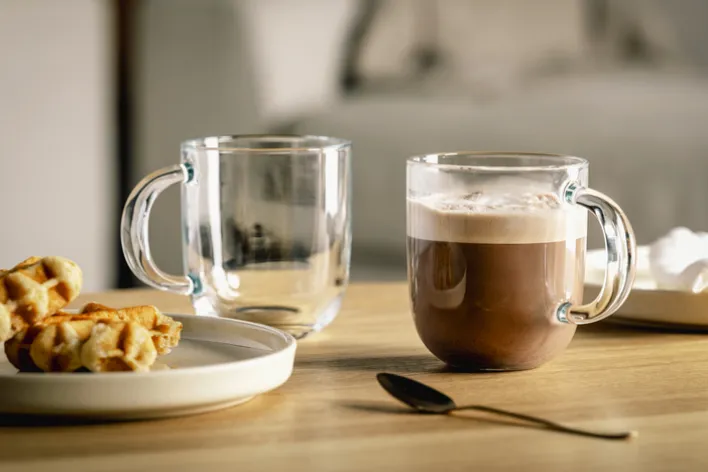 Das Set besteht aus zwei Tassen, die mikrowellengeeignet sind, was ihre Funktionalität im Alltag erhöht. Die robusten Griffe sorgen für einen sicheren Halt, während das klare Glas die Möglichkeit bietet, den Inhalt stilvoll zu präsentieren. Dieses Set ist nicht nur praktisch, sondern auch ein stilvolles Accessoire für jede Küche.