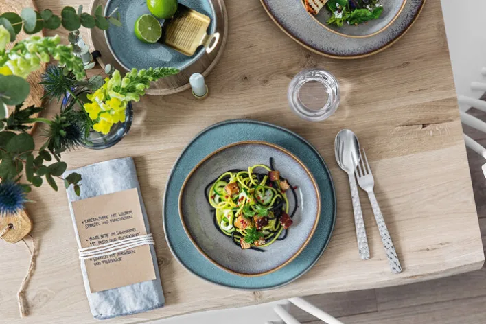 Die flache Schale aus dem LAVE-Sortiment der like.-Kollektion vom renommierten Label Villeroy & Boch ist türkis und hat eine Breite von 27 cm. Sie kann zur stilvollen Präsentation der verschiedensten Snacks verwendet werden. So lassen sich Nüsse, gebrannte Mandeln, aber auch Canapés geschmackvoll arrangieren. Wer sein Frühstück auf eine ganz besondere Art genießen möchte, kann die Schale auch für das Müsli nutzen. Dank ihres neutralen Designs kann sie vielseitig zu anderen Geschirrteilen kombiniert werden.