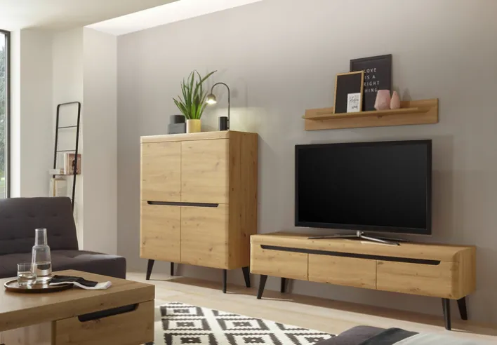 Das Lowboard der Serie TORGE vereint modernes Design mit klassischer Eleganz und passt perfekt in jedes Wohnzimmer.