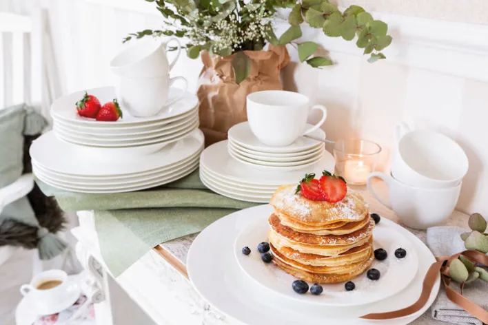 Das MAXWELL & WILLIAMS Kaffeeservice CASHMERE besteht aus exklusivem Bone China Porzellan, sodass Sie sich für ein echtes Premium-Set enthalten, das backofen-, gefrier- und mikrowellengeeignet ist. Selbstverständlich können Sie die einzelnen Teile problemlos in der Spülmaschine reinigen. Das Design ist klar und schnörkellos und somit herrlich zeitlos und vielseitig kombinierbar. Das Set bietet Ihnen sechs Kaffeetassen mit den passenden Untertassen, sechs Dessertteller, sechs Speiseteller und sechs Suppenteller, sodass es für Mittagessen, Abendessen und Kaffee und Kuchen gleichermaßen genutzt werden kann.