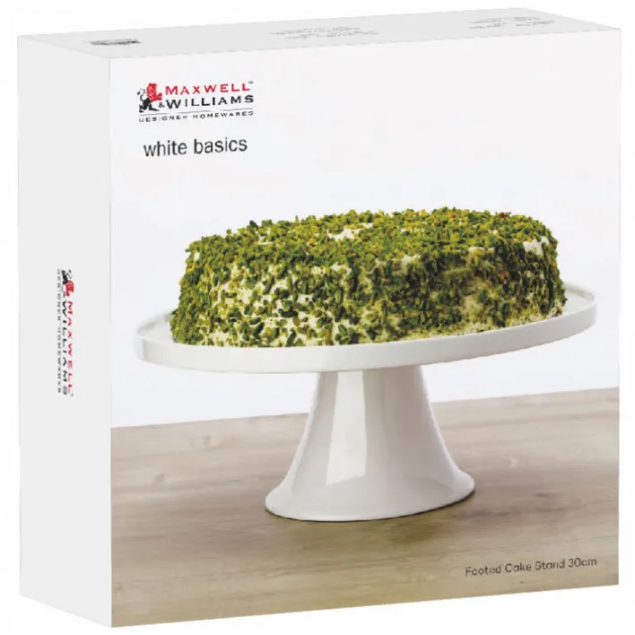 Die weiße MAXWELL & WILLIAMS Tortenplatte BASICS hat einen Durchmesser von 30 cm und ist 11 cm hoch. Sie ist aus robustem Alltagsporzellan hergestellt.