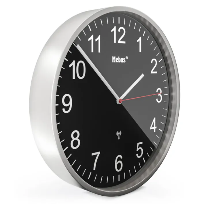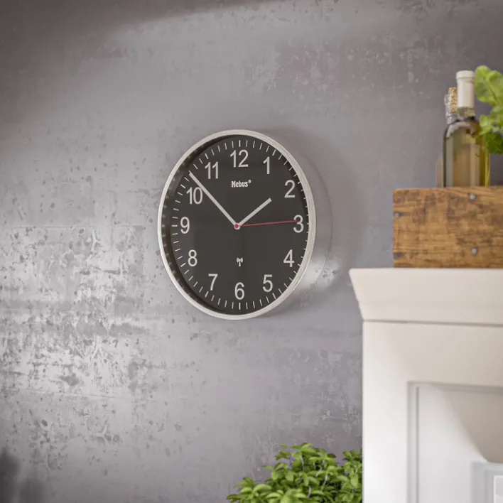 Die Wanduhr von Mebus ist ein schöner Blickfang in der Küche, aber auch im Arbeitszimmer macht sie mit ihrem modernen Look richtig etwas her. Die Uhr und funktioniert mit einem praktischen Funk-Uhrwerk. Zum Betrieb wird eine Batterie des Typs 1,5V AA benötigt.