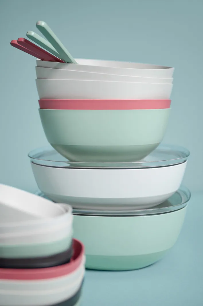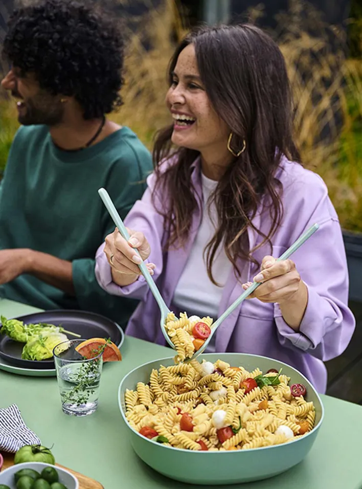 Die grün transparente MEPAL Servierschale SILUETA wird in Europa aus drei BPA-freien Kunststoffen hergestellt: Polypropylen (PP), thermopastisches Elastomer (TPE) und Acryl. Diese Materialien verhalten sich bei bis zu 110°C hitzebeständig. Deswegen ist die Schale vielseitig einsetzbar.