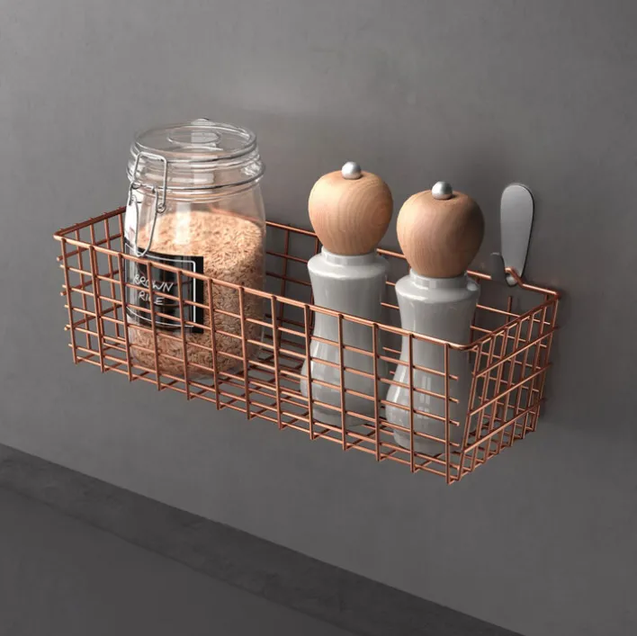 Der vom Label metaltex gefertigte Allzweckkorb KOALA ist kupferfarbig designt und in der hier angebotenen Ausführung als 2er-Set erhältlich. Das Aufbewahrungskörbchen lässt sich – ohne zu bohren – an zwei Häkchen befestigen. Diese wiederum können auf die Fliesen der Küche oder des Bades geklebt werden. Mit seinen vielseitigen Verwendungsmöglichkeiten ist der Korb für die Aufbewahrung von Beauty-Utensilien oder für Küchenaccessoires wie Gewürze einsatzbereit.