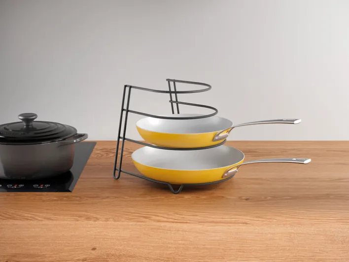 Die schwarze metaltex Bratpfannenablage CANYON bietet auf vier Ablagen Platz um Bratpfannen zu verstauen und lässt die Küche im Handumdrehen aufgeräumter aussehen.