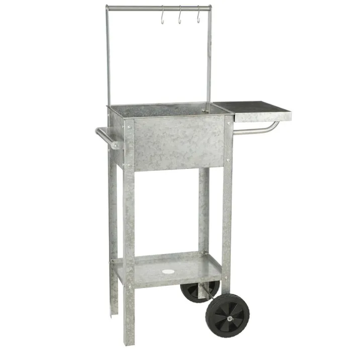 Mit seiner kompakten Größe kann der Pflanztisch auch bei geringen Platzverhältnissen auf der Terrasse und sogar auf einem Balkon zum Einsatz gebracht werden. Er wird massiv aus Eisen in einer schweren Ausführung hergestellt, hat somit einen sicheren Stand und lässt sich durch seine beiden Räder bequem an jeden Wunschort transportieren.