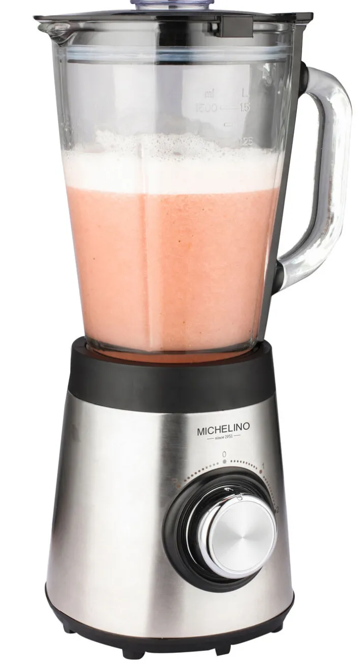 Mit dem MICHELINO Standmixer in der edlen Farbkombination Schwarz und silberfarbig wird die tägliche Aufnahme von gesunden Vitaminen leicht gemacht. Dank des leistungsstarken 500 Watt Motors können im Nu bis zu 1,5 Liter leckere Smoothies zubereitet werden.