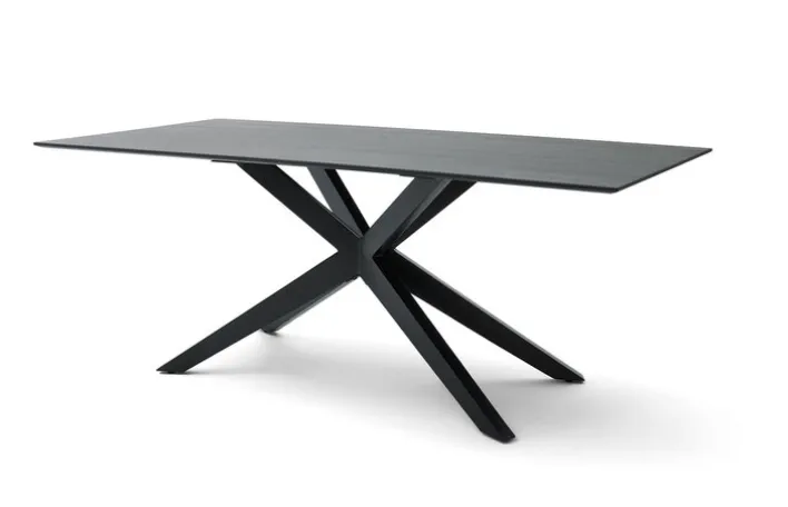 Mit dem Musterring Esstisch TIAMA hält ansprechendes Wohndesign Einzug im Esszimmer. Der 200 cm lange und 100 cm breite Tisch kombiniert eine dezente Tischplatte mit einem auffälligen X-Gestell. Der Tisch ist ganz in Schwarz gehalten und passt besonders gut in modern eingerichtete Räume.