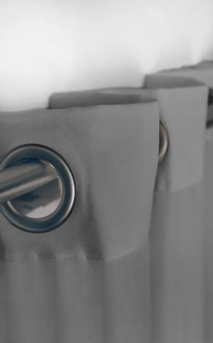 Der helle Grauton des Ösenschals wirkt warm und bringt eine schlichte Eleganz in alle hell eingerichteten Räume. Durch die Regelmäßigkeit der Ösen fällt der Schal automatisch in jeder Position schön – das macht ihn besonders leicht zu handhaben. Aus reinem Polyester gefertigt, kann er bei bis zu 30 Grad Celsius in der Maschine gewaschen werden und sorgt so für gute Luft im Wohnzimmer.