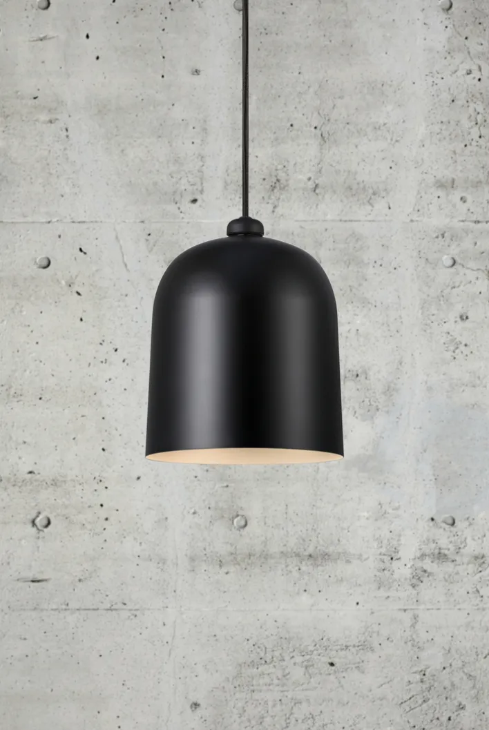 Die schwarze, einflammige Retrofit Pendelleuchte ANGLE von Nordlux zeichnet sich durch ihr schlichtes, modernes Design aus. Sie hat einen Durchmesser von 20,6 cm und sorgt in allen Wohnräumen für ein angenehmes Licht.