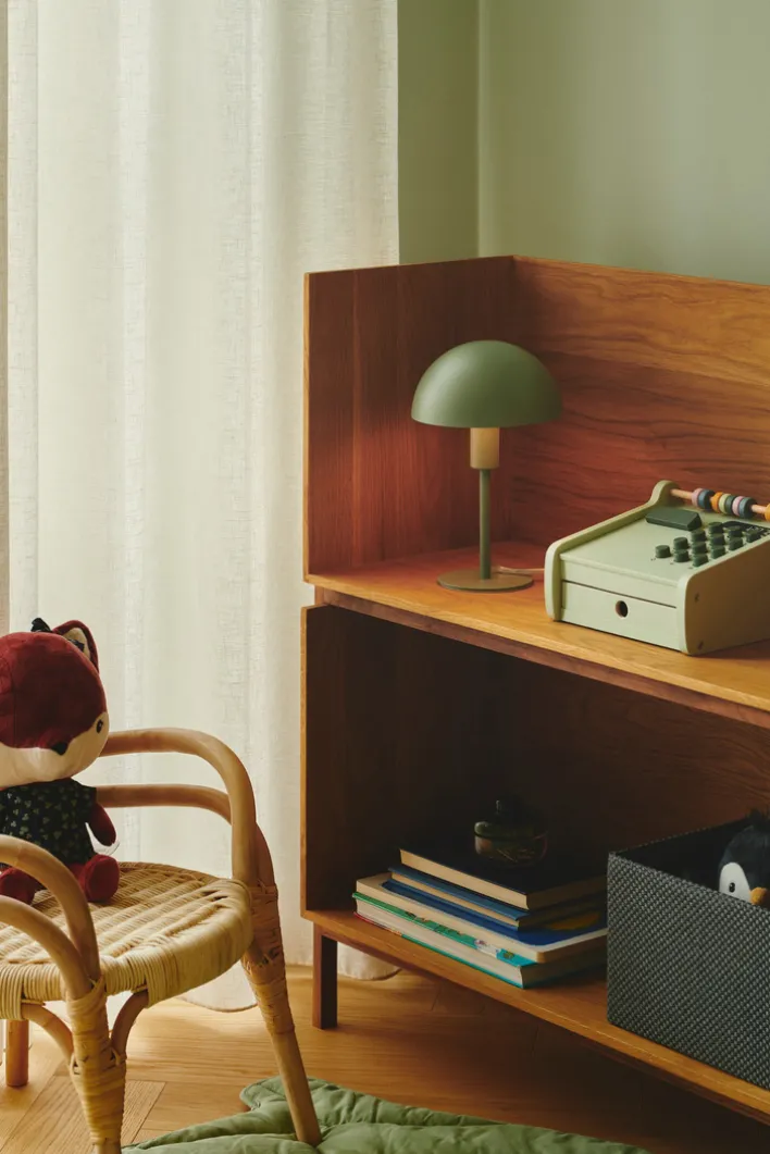 Die grünfarbige Retrofit Tischlampe ELLEN MINI ist nahezu komplett aus Metall gefertigt. Ihr Durchmesser beträgt 16 cm und sie lässt sich ausgezeichnet im Wohnbereich oder in einer Umgebung für Kinder und Jugendliche platzieren.