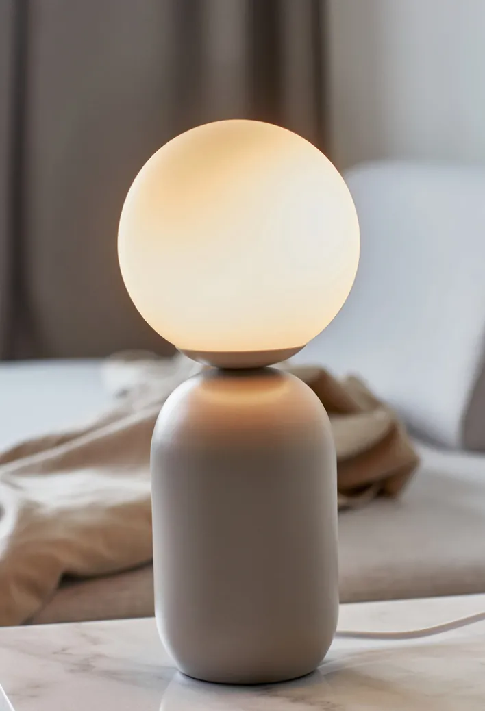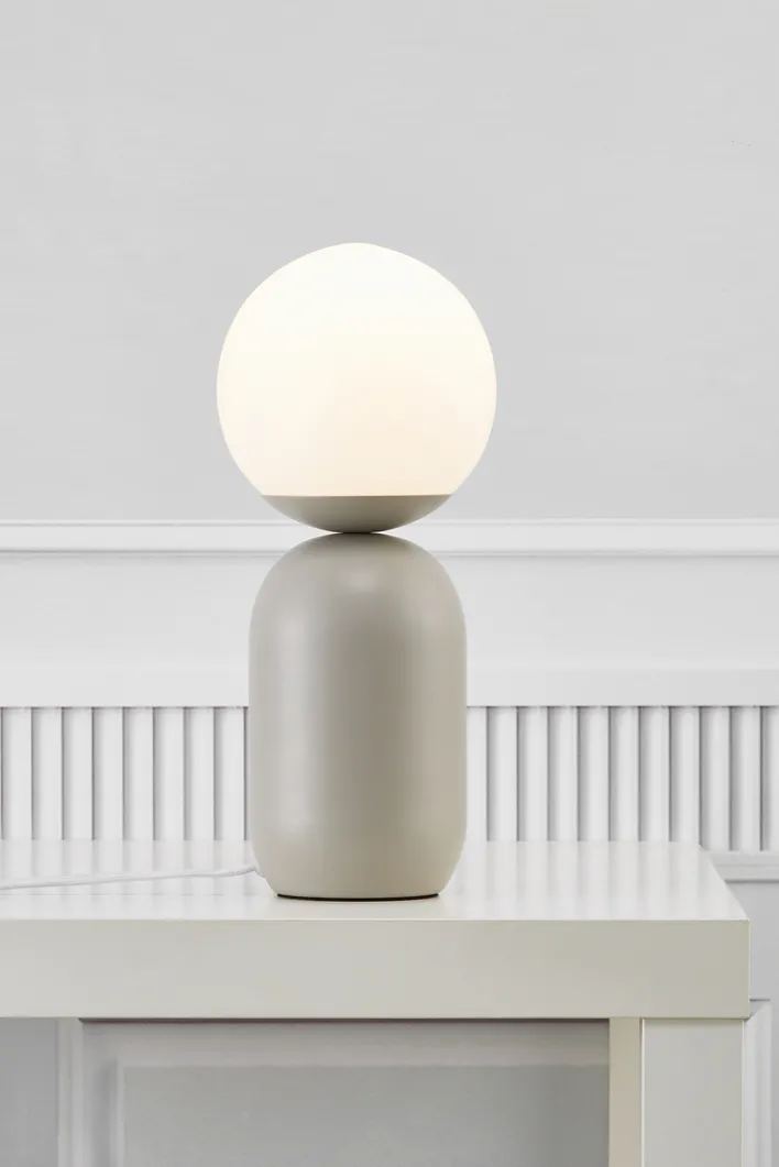 Das Label Nordlux hat mit der Retrofit Tischlampe NOTTI ein Modell im Programm, bei dem eine organische Komposition und ein modernes Design miteinander verschmelzen. Das Arrangement aus kapselförmigem Sockel und Milchglas-Kugelschirm überzeugt durch seine natürliche Einfachheit. Mit ihrem sanften Licht passt die Tischleuchte ausgezeichnet auf den Nachttisch, das Tischchen neben Sessel oder Sofa sowie als dekorativer Akzent in einen freien Bereich auf dem Bücherregal. Zum Betrieb erforderlich ist eine wechselbare E14 Retrofit LED oder Glühlampe. Die Leistung darf maximal 25 Watt betragen.