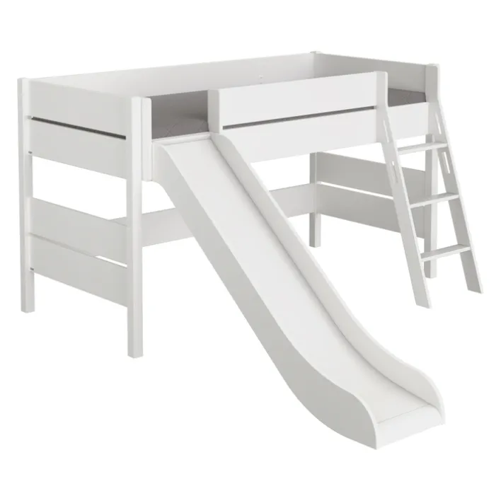 Das weiße Spielbett TIAGO mit Leiter und Rutsche sorgt dafür, dass die Kleinen das Schlafengehen gar nicht abwarten können, denn die Aussicht auf die Rutschpartie nach dem Aufwachen ist einfach zu verlockend!