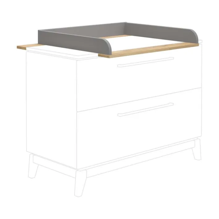 Für maximale Stabilität sorgt das hintere Führungsbrett, das den Aufsatz zuverlässig fixiert, während ein vorderes Führungsbrett zusätzliche Sicherheit gewährleistet. Die dreiseitige Umrandung mit einer Höhe von 12,3 cm minimiert das Risiko, dass das Baby vom Wickeltisch fallen könnte. Abgerundete vordere Kanten erhöhen die Sicherheit und bieten ein vollkommenes Bild. Der Aufsatz besteht aus hochwertiger Holznachbildung in teilmassiver Ausführung.
