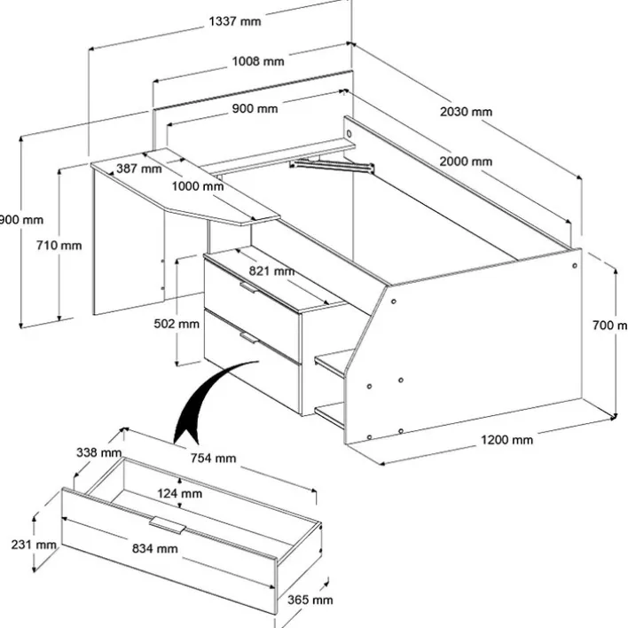 Anzahl Schubkästen inklusive: 2Anzahl Lattenroste inklusive: KeineAnzahl Matratzen inklusive: Keine