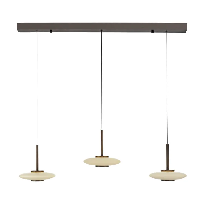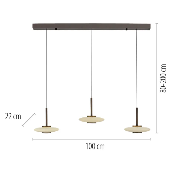 Das 3-flammige LED Balkenpendel PURE VITRUM ist braunfarbig und besteht aus Metall sowie Glas. Es ist 100 cm tief und jederzeit höhenverstellbar.