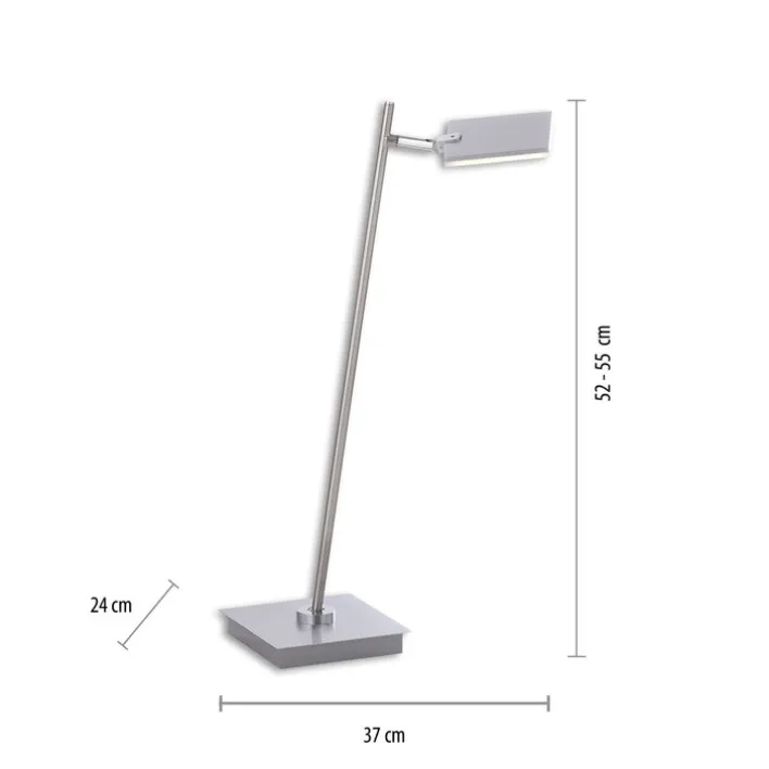 Die LED Tischlampe PURE-MIRA wird inklusive Leuchtmittel und Fernbedienung geliefert. Mit ihren Abmessungen von 55 x 37 x 24 cm passt sie bequem auf jeden Nachttisch und lässt sich bei Bedarf auch nach Wunsch programmieren. Die Lampe besteht zum größten Teil aus Aluminium und ist daher besonders leicht mit nur 1,4 kg Gesamtgewicht. Sie eignet sich damit perfekt als Nachttischlampe.