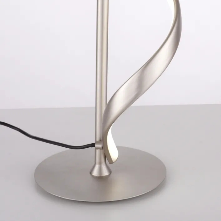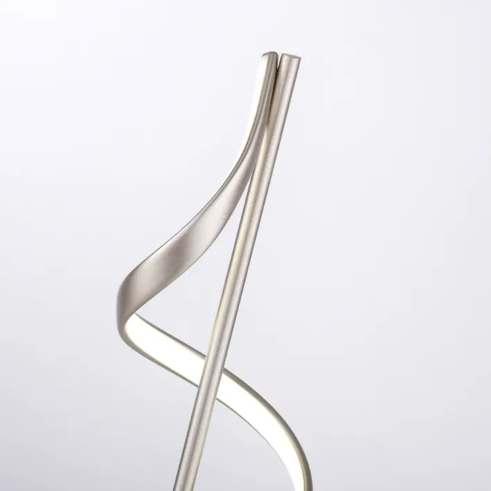 Die silberfarbige LED-Tischleuchte Q-SWING 15,5 cm aus Stahl setzt Maßstäbe: Der geschwungene Lichtstab beeindruckt optisch und spendet zugleich angenehmes Licht, das Nutzer per mitgelieferter Fernbedienung individuell einstellen.