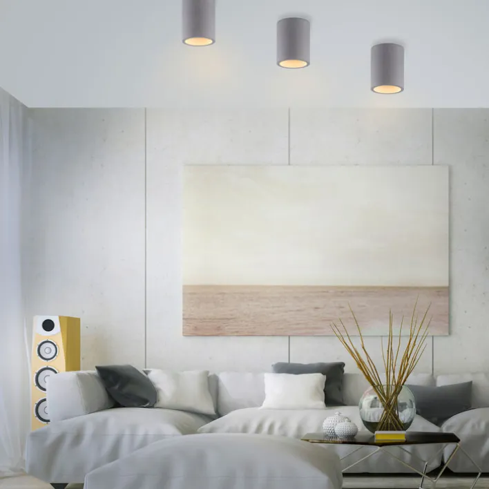 Die stilvoll gestaltete Retrofit Deckenlampe ETON von Paul Neuhaus hat einen Durchmesser von etwa 11 cm. Sie hat ein zeitloses Design und passt in den modern eingerichteten Wohnbereich. Durch die elegante Beton-Optik und die zylindrische Form ist die 1-flammige Lampe vielseitig kombinierbar. Sie passt in geschmackvoll eingerichtete Wohnzimmer und ist auch zur Beleuchtung des Eingangsbereichs ideal. Die Deckenlampe sorgt für ein helles Licht, das nicht blendet.