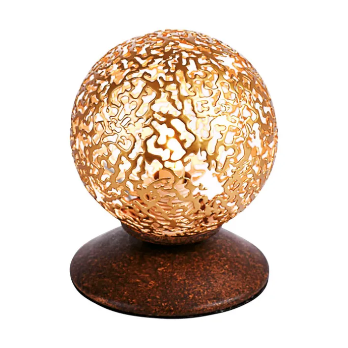 Die GE-geprüfte Paul Neuhaus Retrofit Tischlampe GRETA im Landhausstil besteht aus einem rostfarbigen Lampenfuß und einer goldfarbigen Kugel. Mit der lichtdurchlässigen Kugel wirft die Tischlampe ein bezauberndes Muster an Wand und Decke. Als Leuchtmittel eignen sich 40 Watt AGL und Retrofit Glühbirnen sowie 8 Watt LED Leuchtmittel mit G9 Fassung. Ein- und ausschalten lässt sich die Tischlampe GRETA ganz einfach mit dem Schnurschalter an der Zuleitung. Ob auf Tisch oder Kommode, diese Tischleuchte wirkt überall.