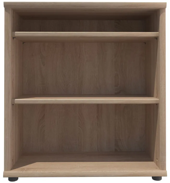 Kleine schwarze Füße heben das Regal mit seinen drei offenen Fächern ein wenig vom Boden ab. Zwei Fächer sind groß, hier können Bücher aufrecht stehen, kleine Körbe mit allem Möglichen finden Platz. In dem flachen Fach darüber sind Zeitschriften und Zeitungen oder Schreibutensilien gut aufgehoben. Damit ist klar: Das ist kein reines Wohnzimmerregal, das kann auch im Esszimmer, im Flur, im Jugendzimmer oder im Homeoffice stehen. Es passt überall da, wo Stauraum gewünscht ist und Eiche gut aussieht.