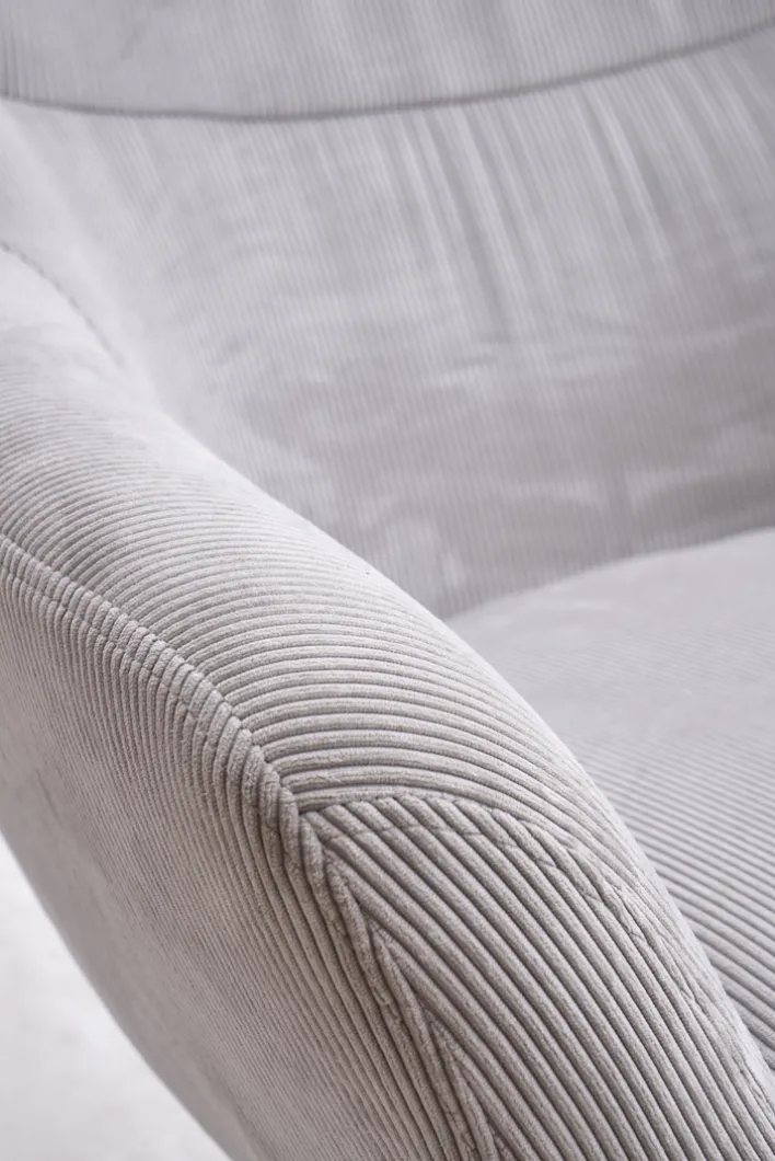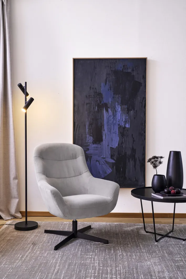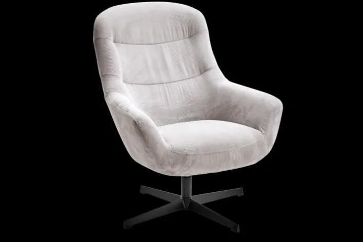 Dieser besticht im Design durch den beigefarbenen Cordbezug sowie das schwarze Fußkreuz. Letzteres ist pulverbeschichtet. Die Marke Quartier bietet hier einen Sessel, der mit festen, gepolsterten Armteilen ausgestattet ist. Für den Polsteraufbau kommt sogenannter Polyurethanschaum (PUR-Schaum) zum Einsatz. Der Bezug selbst ist aus 100 Prozent Polyester (PES). Mit einer Breite von 84,5 cm, einer Höhe von 94,5 cm und einer Tiefe von 73 cm ist dieses Möbelstück bis maximal 120 kg belastbar. Der creme-weiß-farbige Relaxsessel DIEGO eignet sich für den Innenbereich.