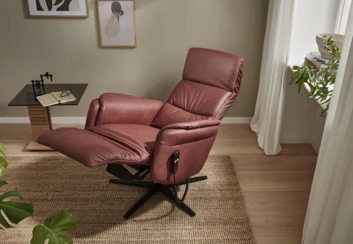 Der Relaxsessel STEVE in Marsalarot überzeugt auf den ersten Blick mit einem top modernen, farbenfrohen Look. Zusätzlich zur ansprechenden Optik bietet er einen hervorragenden Sitzkomfort und sorgt mit seiner Relaxfunktion nach einem langen Tag für Entspannung pur.