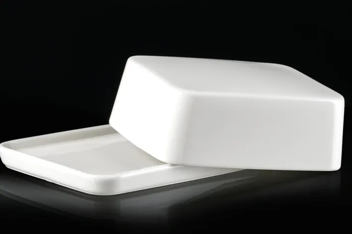 Die Ritzenhoff & Breker Butterdose SKAGEN besteht vollständig aus weißem Porzellan. Nach Gebrauch darf sie in die Spülmaschine. Außerdem ist sie mikrowellengeeignet. Sie ist glasiert. Ihre Größe passt für ein Stück Butter.