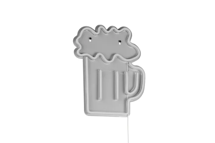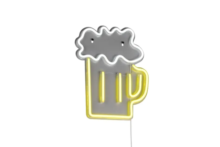 Die Dekoleuchte BEER von Reality RL ist ein stilvolles Accessoire im Retro-Design, das jedem Raum eine besondere Atmosphäre verleiht. Die Leuchte hat die Form eines Bierkrugs und kombiniert organische Formen mit einem mehrfarbigen, transparenten Design. Die Hauptfarben sind ein leuchtendes Gelb und Weiß, die durch die fest eingebaute LED-Beleuchtung besonders zur Geltung kommen. Mit einer Breite von 29,5 cm, einer Höhe von 36 cm und einer Tiefe von 1,6 cm ist sie kompakt und dennoch ein auffälliger Blickfang. Die Leuchte besteht aus hochwertigem Kunststoff und ist mit einem Ein-/Ausschalter sowie einem Schnurschalter ausgestattet. Sie verfügt über einen USB-Anschluss, was die Nutzung besonders flexibel macht. Die Schutzklasse 3 und die Schutzart IP20 gewährleisten eine sichere Anwendung im Innenbereich. Mit einem Energieverbrauch von 5 W und einer Brenndauer von 25.000 Stunden ist die Leuchte nicht nur dekorativ, sondern auch energieeffizient. Der Farbwiedergabeindex von 80 sorgt für eine angenehme Lichtqualität.