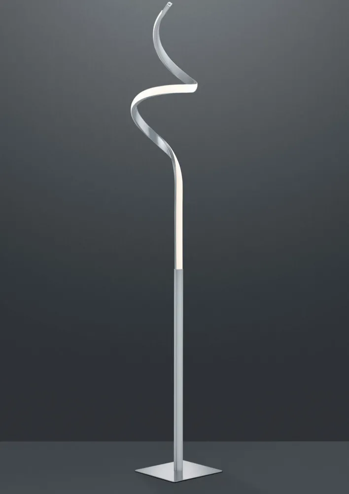 Die moderne LED Stehlampe COURSE von RL kommt nickelfarbig und im außergewöhnlichen Design daher. Spiralförmig windet sie sich Richtung Decke und ist ein stylischer Hingucker in jeder zeitgenössischen Wohnlandschaft. Da der Farbton neutral ist, kann sie sowohl zu natürlichen, als auch zu farbigen Einrichtungsstilen gestellt werden. Mit ihrer schlanken Form und dem geringen Durchmesser des Fußes passt sie in nahezu jede Nische.