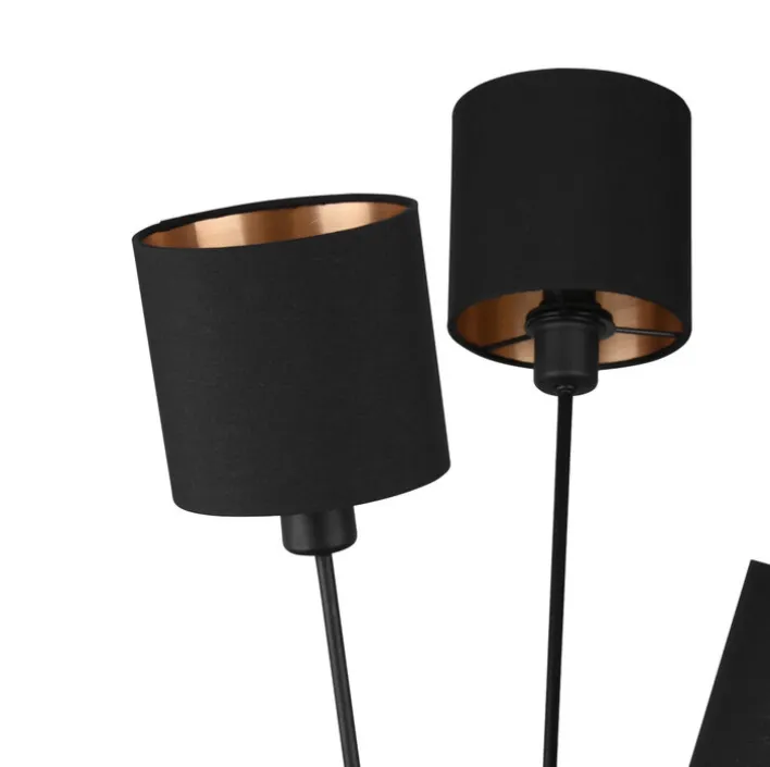 Modernes Design und wohnlich warmes Licht bietet die 150 cm hohe RL Retrofit Stehlampe TOMMY mit ihren drei unterschiedlich ausgerichteten Spots. Die außen schwarz und innen goldfarbig gehaltenen Metallschirme zaubern ein gemütliches Ambiente in Wohn- oder Schlafräume. Für die komfortable Bedienung ist die Leuchte mit einem Fußschalter ausgestattet.