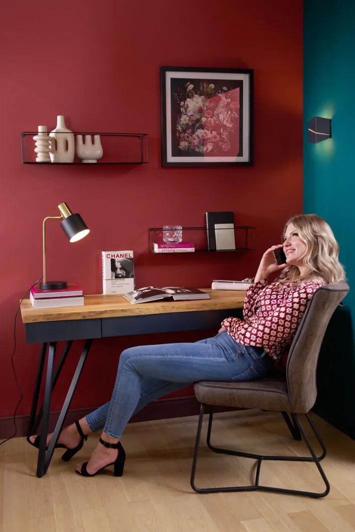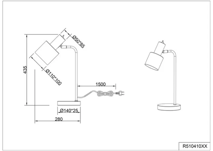 Die Tischlampe ist aus hochwertig verarbeitetem Metall hergestellt. Der runde Fuß und der Schirm sind lackiert. In den Schirm ist eine E14-Fassung für Leuchtmittel bis 40 Watt eingebaut. Auf der Rückseite des Lampenschirms ist ein Ein- und Ausschalter eingebaut. Die Tischlampe ist CE-geprüft.