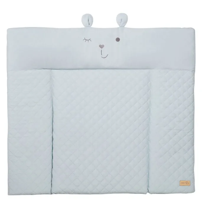 Die Wickelauflage LIL STYLE in Türkis stammt aus dem Hause der deutschen Qualitätsmarke roba. Sie ist mit einem niedlichen Bärchengesicht und Ohren versehen und passt mit einer Größe von 85 x 75 cm auf die meisten Standard-Wickelkommoden.