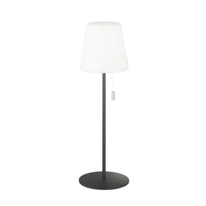 Die aparte Tischleuchte in zeitlosem Design und mit Retro-Charme hellt laue Sommernächte auf. Sie kann überall positioniert werden, auch im Garten oder auf dem Balkon.