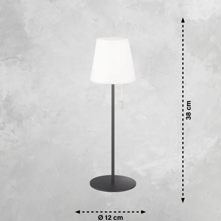 Die Aufladung funktioniert durch einen USB-Anschluss. Ist der Akku voll aufgeladen, leuchtet sie 4-5 Stunden lang. Durch den anthrazitfarbenen Halter und den Lampenschirm in Weiß passt diese stilvolle Leuchte mit einer Höhe von 38 cm auf jeden Tisch. Das Beste daran ist jedoch ihre Dimmbarkeit in 2 Stufen.