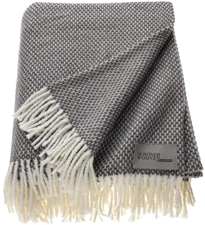Die hellgraue Wohndecke ZEN von der Qualitätsmarke SCHÖNER WOHNEN-Kollektion hat eine Größe von 140 x 200 cm . Mit einem Fransen-Abschluss ist sie ein dekoratives Wohnaccessoire.
