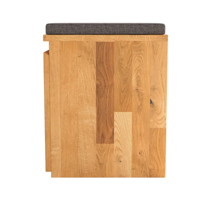 Die Garderobenbank aus der Serie POUR vereint Funktionalität und ansprechendes Design. Gefertigt aus massiver Kernbuche, bietet sie eine robuste und langlebige Konstruktion. Die natürliche Holzmaserung verleiht der Bank eine warme, einladende Ausstrahlung, die sich harmonisch in verschiedene Wohnstile einfügt. Mit einer Breite von 80 cm, einer Höhe von 46 cm und einer Tiefe von 39 cm ist sie kompakt genug, um in Fluren oder Eingangsbereichen Platz zu finden, ohne dabei auf Stauraum zu verzichten. Die Hauptfarbe Braun unterstreicht die natürliche Optik des Holzes und sorgt für eine zeitlose Eleganz. Die Bank verfügt über eine praktische Ablagefunktion, die zusätzlichen Stauraum für Schuhe oder andere Gegenstände bietet. Mit einem Gewicht von 24 kg steht die Garderobenbank stabil und sicher an ihrem Platz.