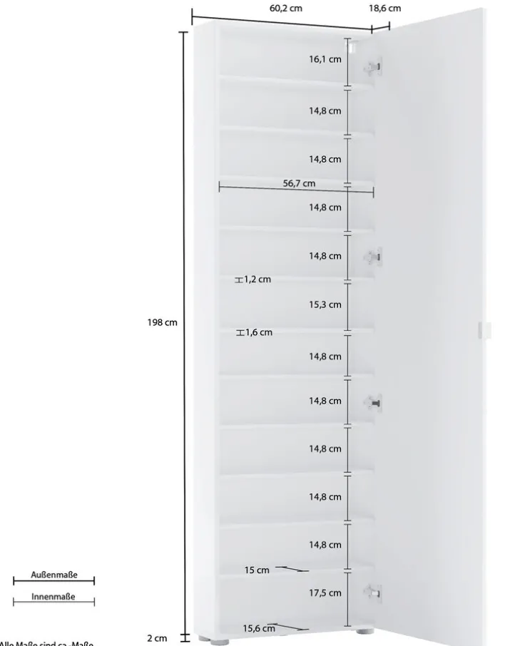 Anzahl Drehtüren inklusive: 1Anzahl Einlegeböden inklusive: 10