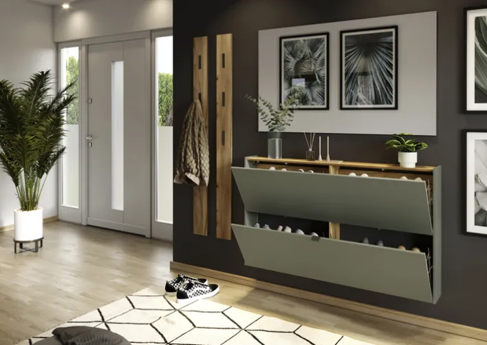Der Schuhschrank aus der Serie AMECA vereint modernes Design mit praktischer Funktionalität.