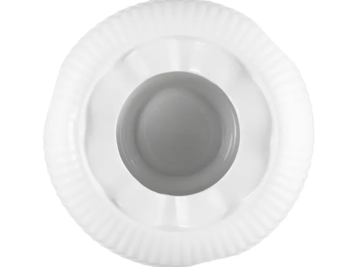 Sein ansprechendes Rillenrelief sorgt für etwas Bewegung im Weiß. Zudem ist die Oberfläche gewellt. Das Stövchen wird dem Landhausstil zugerechnet, es ist aber so neutral gearbeitet, dass es in jedem Haushalt stehen und zu jedem Geschirr verwendet werden kann. Es wird bei Gebrauch üblicherweise mit einem Teelicht versorgt (nicht im Lieferumfang enthalten) und hält Porzellan- oder Glaskannen lange Zeit warm.