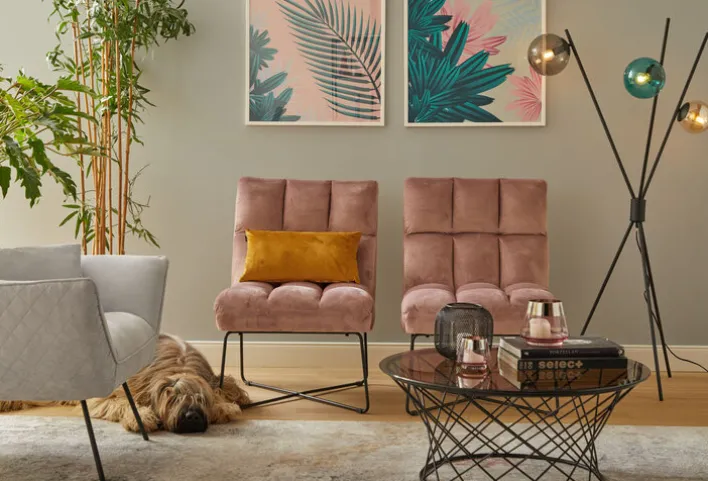 Der Sessel MATCH mit Stoffbezug in Rosa bringt eine freundliche Atmosphäre in Ihren Wohnbereich. Weich gepolstert und mit einem filigranen Metallgestell versehen, fügt sich das Sitzmöbel optimal in den modernen Einrichtungsstil ein. Mit dem Sessel MATCH mit Stoffbezug in Rosa schaffen Sie sich Ihren ganz persönlichen Lounge-Bereich. Ob im Wohnzimmer oder im Arbeitszimmer, das Polstermöbel können Sie überall aufstellen, wo Sie eine zusätzliche Sitzgelegenheit benötigen. Mit weiteren Sesseln um einen Beistelltisch positioniert, schafft er behagliche Club-Atmosphäre. Im Wohnzimmer bietet er sich als bequemer Fernseh- und Lesesessel an. Für hohen Komfort sind Sitzfläche und Rückenlehne mit hochwertigem Schaumstoff gepolstert. Das Gestell besteht aus matt lackiertem Metall in Anthrazit. Das zierliche Fußkreuz bildet einen attraktiven Kontrast zu den dicken Polstern und steht sicher und fest auf dem Boden. Der Stoffbezug schimmert wie feiner Samt und wirkt durch seine Steppoptik äußerst einladend. Der Bezug erstreckt sich auch über die Rückseite, sodass Sie den Sessel MATCH frei im Raum platzieren können. Die Farbgebung in Rosa bereichert Ihren Wohnraum um eine frische Note und lässt sich vielseitig kombinieren.