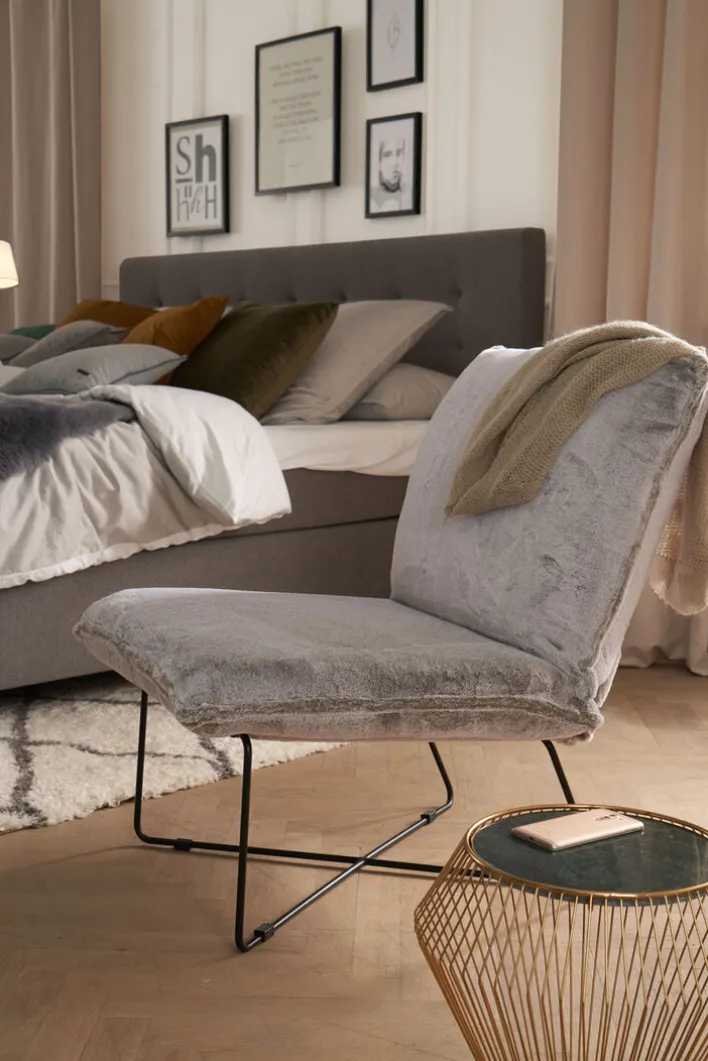 Der Sessel MITCH mit samtweichem Stoffbezug in dezentem Hellgrau verbindet modernen Sitzkomfort mit einer unkonventionellen und zeitlos unverkrampften Optik. Mit seinem charakteristischen Formdesign liegt der Sessel MITCH aus dem Hause QUARTIER voll im Trend: Die Kombination einer fast ausschließlich aus weicher Polsterung bestehenden Sitzfläche mit einer dazu völlig symmetrisch geformten Rückenlehne und einem äußerst filigran anmutenden Metallgestell ergibt eine Gesamtoptik, die sich gleichermaßen durch zeitlosen Charme und durch eine angenehme Fokussierung auf funktionale Aspekte wie den Sitzkomfort auszeichnet.