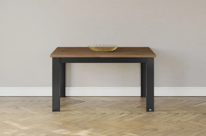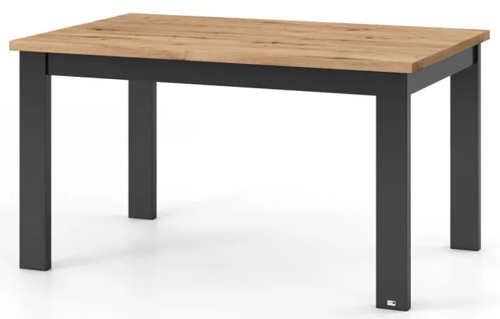 Der set one by Musterring Esstisch YORK 67 besitzt ein Gestell in Anthrazit und eine Tischplatte in Eiche Artisan. Breite und Länge betragen 90 x 140 cm.