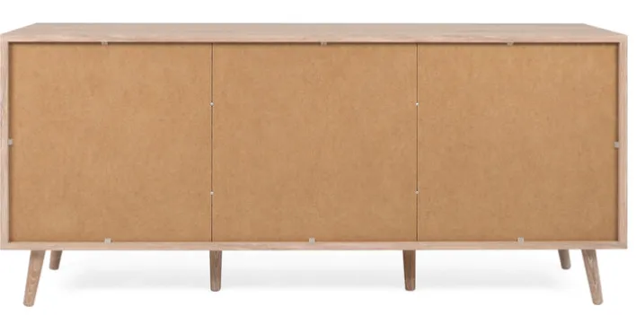Das Sideboard BALI kombiniert den soliden Korpus in Eiche-Dekor mit spannenden Fronten in Geflecht-Optik und hohen Füßen auch massivem Eschenholz. Diese Komposition lässt das Sideboard elegant und doch herrlich natürlich wirken. Punkten kann dieses Möbelstück natürlich nicht nur mit seinem eleganten Design! Hinter den drei Drehtüren verstecken sich drei Einlegeböden auf denen sich Alltagsgegenstände übersichtlich, jederzeit griffbereit und doch vor fremden Blicken geschützt aufbewahren lassen. Für ein harmonisches Ambiente lässt sich das Sideboard mit weiteren BALI Möbeln kombinieren.