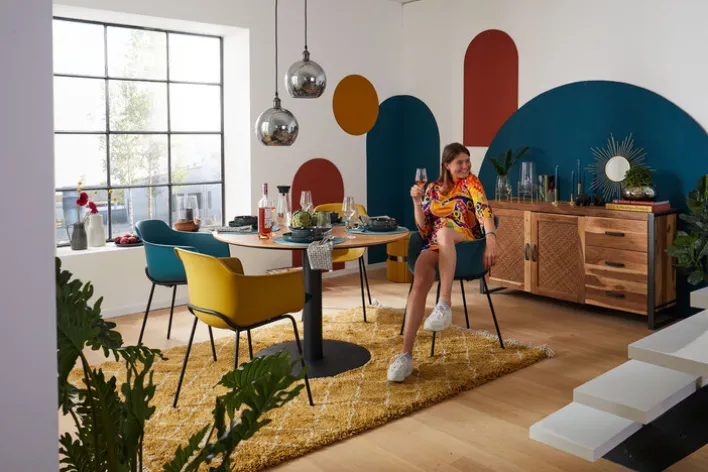 Für Korpus, die 3 Schubladen und die 2 Schranktüren des Sideboards TOM kommt massives Akazienholz zum Einsatz. Der natürliche Charakter des Holzes bleibt durch die farblos lackierte Oberfläche erhalten. Die Drehtüren sind mit einem Einsatz aus Rattan ausgestattet, dessen Struktur perfekt mit dem Akazienholz harmoniert. Ein robuster Rahmen aus Metall und Griffe im gleichen Farbton komplettieren das Design. #meinporta #portamöbel #herbstfarben