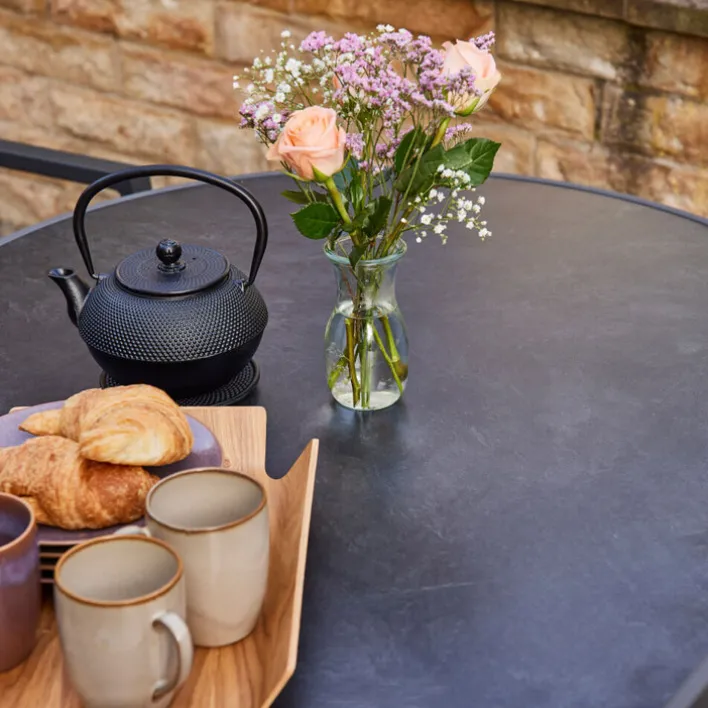 Der hochwertige Klapptisch PACO von siena GARDEN hat ein zeitloses Design und präsentiert sich elegant im Farbton darkstone. Durch die abgerundete Tischplatte mit den Maßen 140 x 90 cm ist der Klapptisch ein Blickfang und ideal für den Garten, die Terrasse oder den Balkon. Er passt zu vielen verschiedenen modernen und klassischen Stuhlvarianten. Der Klapptisch bietet ausreichend Platz für vier Personen und ist ideal für entspannte Momente im Freien.