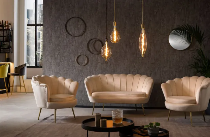 Der Sofa 2-Sitzer in der Trendfarbe Beige zieht mit seinem extravaganten Look alle Blicke auf sich. Sein spannendes Muscheldesign vereint das Sofa mit einem hohen Sitzkomfort, der es rasch zum Lieblingsplatz der Gäste macht.
