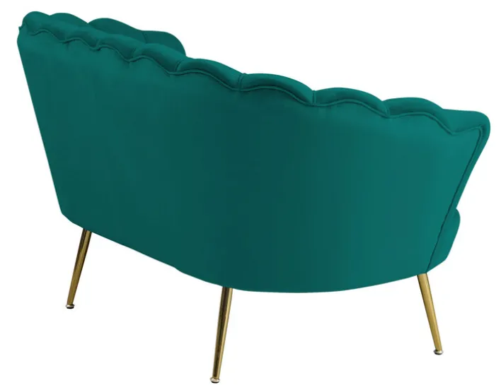 Der Sofa 2-Sitzer in Grün ist eine bequeme Sitzgelegenheit und edler Blickfang in einem. Mit seinem spannenden Muschellook strahlt das Sofa die Eleganz längst vergangener Tage aus, wirkt dabei jedoch stylisch.