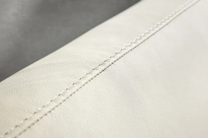 Das Sofa VARESE hat eine Stellfläche von 206 x 67 x 110 cm und wirkt mit seinem schwarzen Kufengestell stylisch. Unterstrichen wird die stilvolle Optik vom weißen Hirschnappaleder-Bezug. Der 2,5-Sitzer sieht nicht nur gut aus, er ist mit einer Kombination aus gekreuzter Gurtunterfederung und Schaumstoffpolsterung zudem äußerst bequem. Das Highlight der Sitzgelegenheit ist jedoch die Kopfteilverstellung. Das Sofa ist rückseitig ebenfalls mit Originalstoff bezogen und sieht auch in der Mitte des Raumes edel aus.